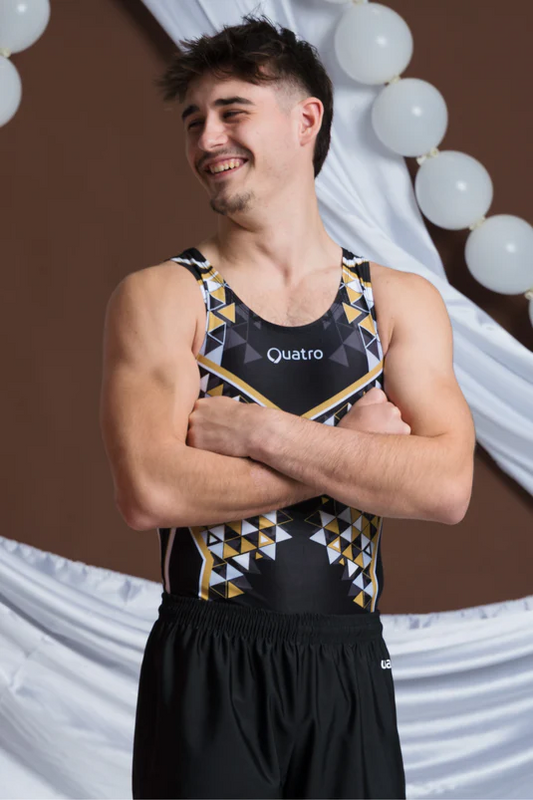 Inspired by the radiant sun of the Philippine flag, this custom-designed leotard was worn by national team athletes Emma Malabuyo, Aleah Finnegan, and Levi Jung-Ruivivar in Paris. Shimmering golden stones add energy and elegance, making this the perfect blend of bold style and athletic performance for gymnasts who want to shine.